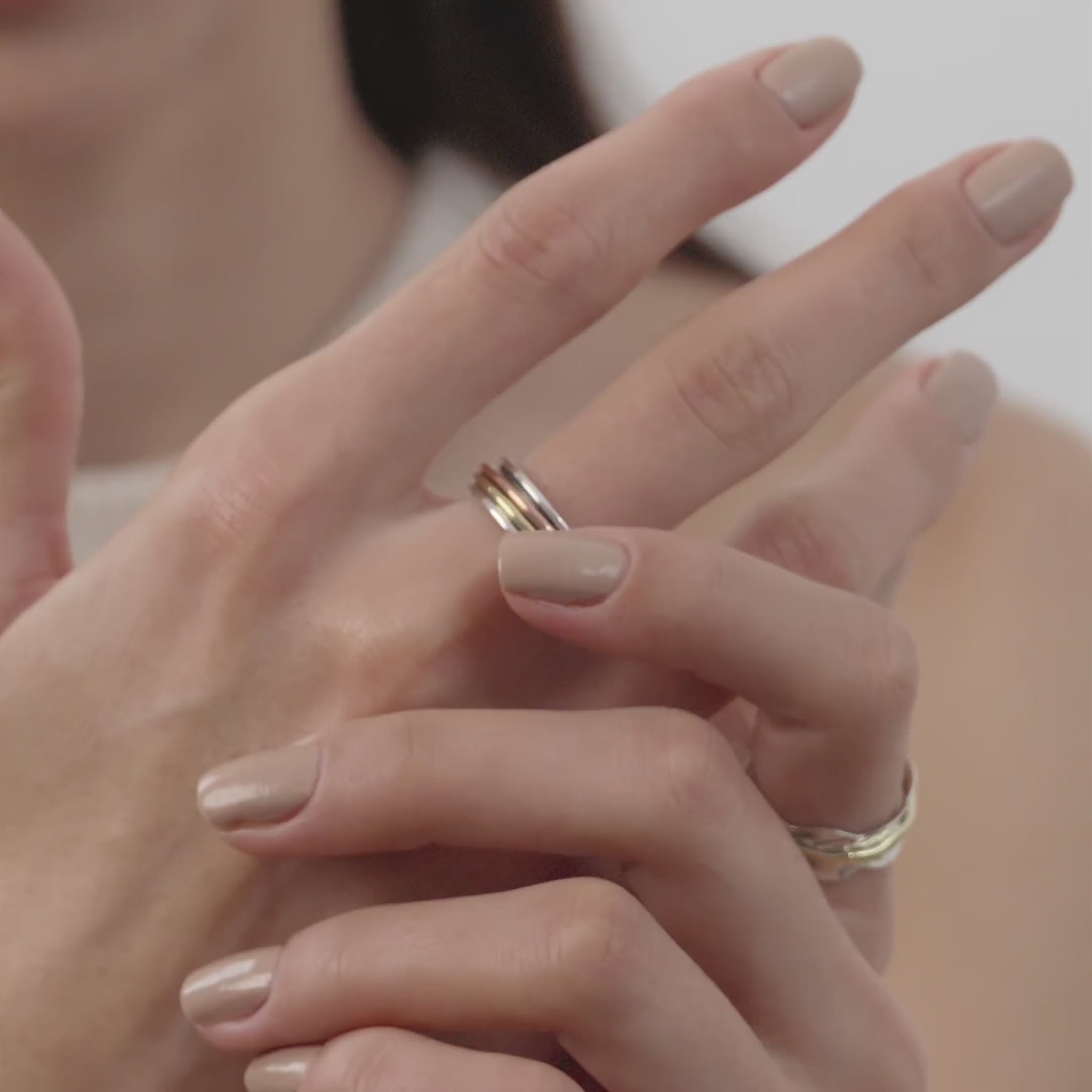A Waterproof Fluid concept: Uniquely designed handcrafted spinner silver ring for women, where a free-flowing slender designer ring spins around exquisitely textured base ring. Natural patina adds a touch of rustic charm, making it a perfect accessory for everyday use.